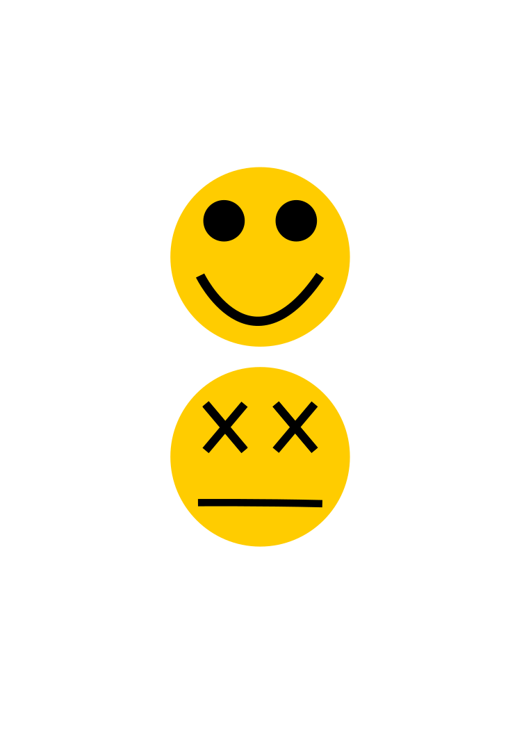 This features a yellow smiley face with a single black dot in the center, placed on a white background. This iconic symbol of happiness is often used to convey positivity and goodwill. In contrast, the black dot represents negativity or sadness. The two symbols are positioned side by side, creating an interesting visual effect that highlights their contrasting meanings.