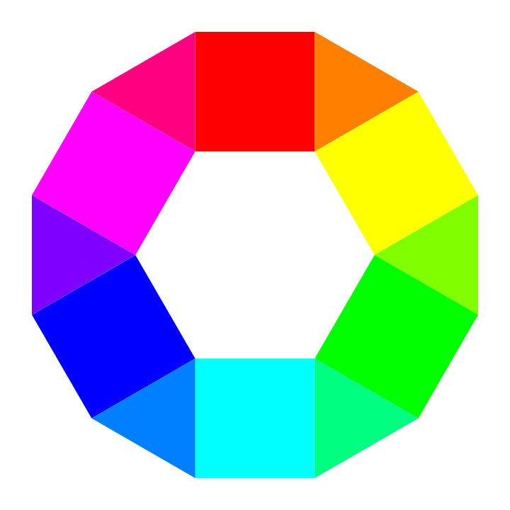 This features a large, colorful circle made up of six hexagons. Each hexagon is colored with one of the primary colors: red, orange, yellow, green, blue, and purple. These vibrant colors create an eye-catching pattern that fills the entire circle. The combination of these six distinct colors creates a visually appealing and lively design.