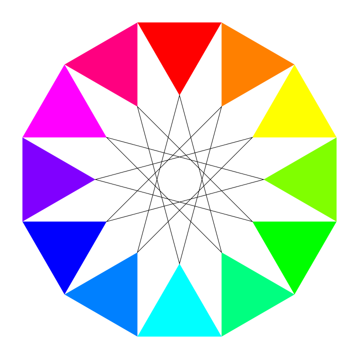 Tags: black, dodecagon, dodecagram, rainbow, colorful, dodecagon rainbow