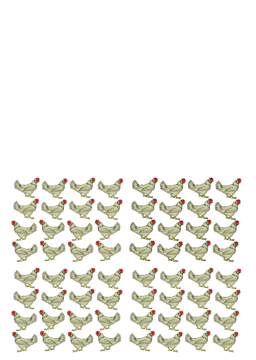 This features a large number of chickens arranged in various positions. There are at least 13 chickens visible, each with different orientations and distances from one another. Some chickens are located near the top left corner of the image, while others can be found closer to the center or towards the bottom right side. The arrangement creates a sense of depth and complexity in the scene, as if it were a visualization of a manycore architecture.