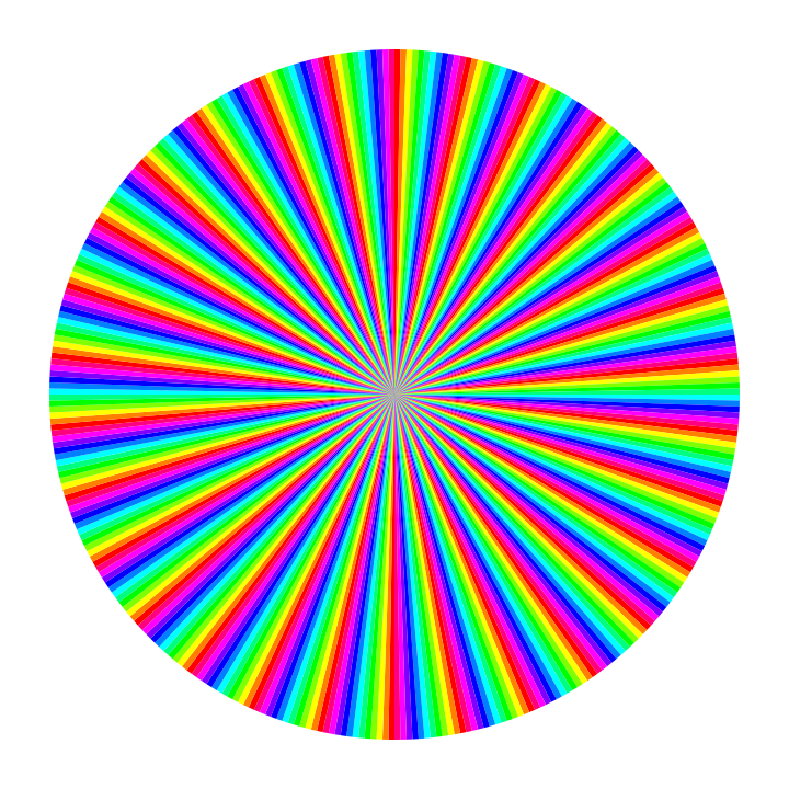 This features a large, colorful circle with a rainbow-like pattern. The circle is composed of twelve distinct colors, each one occupying a different section of the circle. These colors are arranged in such a way that they create an eye-catching and vibrant display. The circle's design resembles a hurricane or a swirling vortex, adding to its visual appeal. Overall, it is a captivating and lively image that showcases the beauty of color combinations.