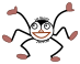This features a cartoon spider with big, long legs and an exaggerated smile. It appears to be in the middle of a dance or celebration, as it is holding its arms up high. The spider's facial expression gives off a playful vibe, making it seem like it is enjoying itself. This whimsical illustration could be used for various purposes such as children's books, greeting cards, or even as an art piece to brighten up someone's day.