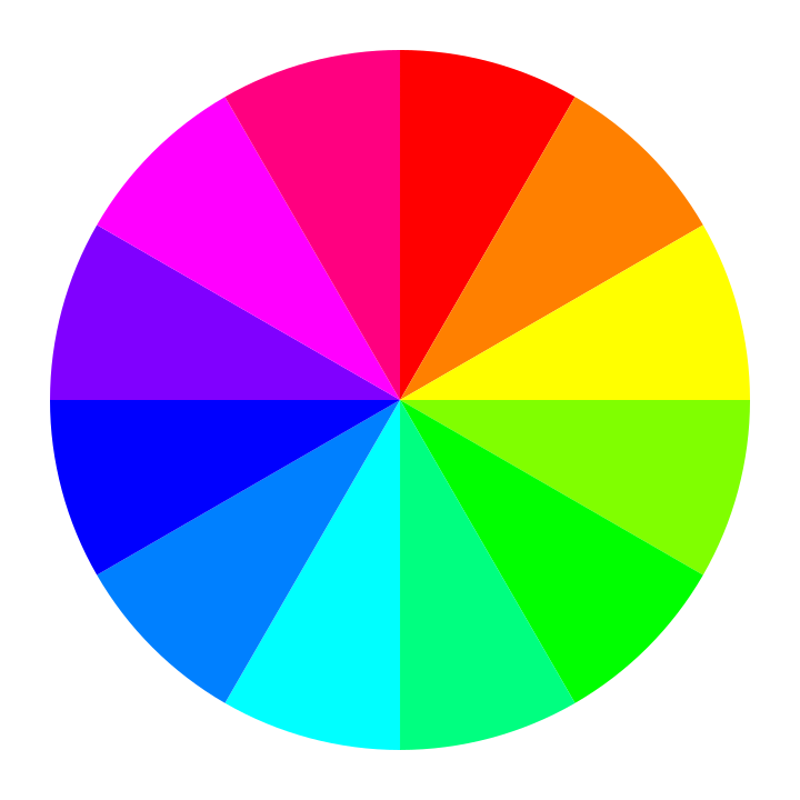 This features a large, colorful circle that is divided into twelve sections. Each section represents one of the colors in the rainbow: red, orange, yellow, green, blue, purple, and pink. These colors are arranged in a circular pattern, with each section being distinctly colored. The circle appears to be a close-up view of a color wheel or a pie chart, showcasing the various hues that make up the rainbow spectrum.
