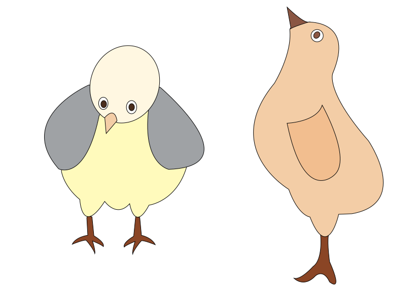 This features two cartoon birds standing next to each other. One bird is yellow and gray, while the other is brown and white. They are both positioned on a white background, which provides a clean and uncluttered appearance. The birds appear to be looking in opposite directions, adding an element of depth and interest to the scene. Overall, it's a simple yet charming illustration that showcases these two colorful avian characters.