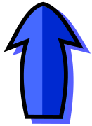 This features a blue arrow pointing upwards, with the tip of the arrow being slightly larger than the rest. This blue arrow is set against a light brown background, creating a contrast between the two colors. The arrow's design and color make it stand out prominently in the scene.