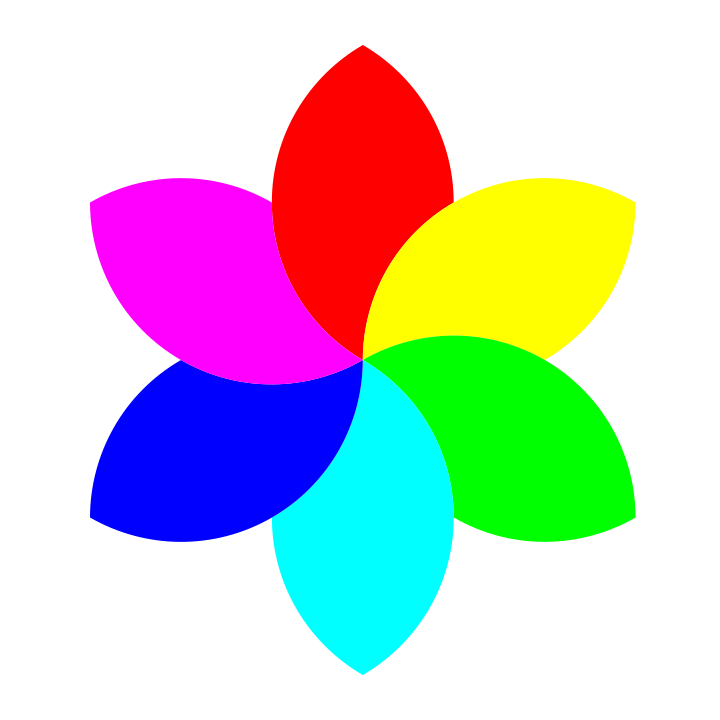 This features a colorful flower with six petals, each in different colors. These colors include red, yellow, blue, green, and orange. The flower is displayed prominently on the left side of the image, taking up most of the frame. The vibrant colors create an eye-catching and lively atmosphere, making it a visually appealing piece of art or design.