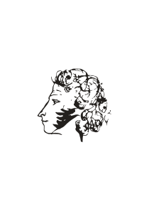 This features a drawing of a person with a head full of hair, possibly representing the artist Alexander Pushkin. The drawing is in black and white, giving it an artistic and classic appearance. The hair on the person's head appears to be intricately designed, adding detail and interest to the overall composition. This image could potentially be used as a logo or symbol for someone who appreciates the work of Alexander Pushkin or simply enjoys the artistic representation of his style.