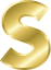 This features a large, golden letter S that is prominently displayed. The letter has a shiny and reflective appearance, giving it an elegant look. The gold color of the letter adds to its sophisticated appearance, making it stand out against any background. This letter could be used in various contexts such as branding or decorative purposes, where its distinctive design would draw attention and convey a sense of luxury or quality.
