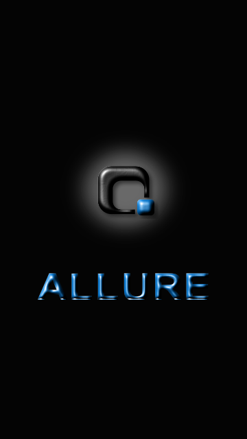 This is a close-up of the word "allure" written in blue. The word is displayed prominently, taking up most of the frame. The background appears to be dark or black, which draws attention to the word itself. This could potentially be an advertisement or a design element for a product or service related to the word "allure."