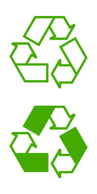 This features two recycling symbols, each with a green outline. One of the symbols is white and green, while the other one is green and white. These symbols are placed on a tan background, which creates a contrast between the colors of the symbols and their surroundings. The presence of these symbols suggests an emphasis on environmental awareness and recycling practices.