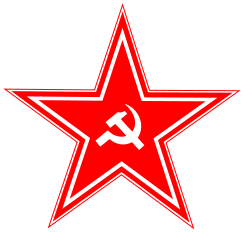 This features a large, red star with a white outline and the hammer and sickle symbol in the center. This iconic symbol is often associated with communism or socialist ideologies. The star's vibrant color and bold design make it an eye-catching focal point in the image.