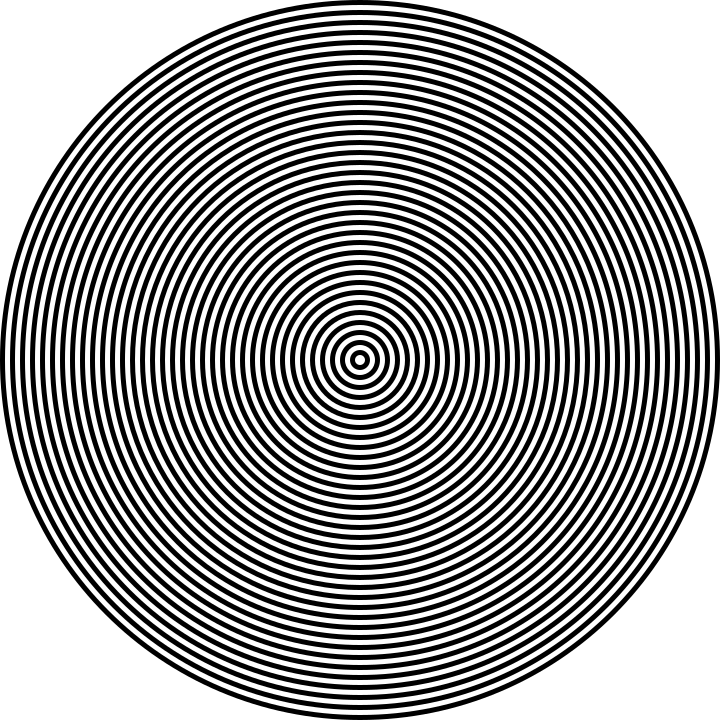 This is a black and white circle with a spiral pattern inside of it. It appears to be an artistic representation, possibly created using a bash script or other computer program. The circle itself has a diameter of 720 pixels, while the spiral pattern fills the entire space within the circle. The spiral's design is such that it creates a sense of depth and complexity as it moves through the center of the circle. Overall, this image showcases an intricate and visually appealing artistic creation.