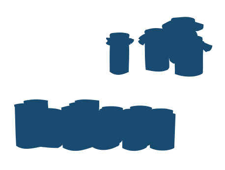This features a collection of various jars and tins, all in silhouette form. There are five jars in total, with one jar being larger than the others. They are arranged in a row, with some jars overlapping each other. Additionally, there is a single tin among them, positioned towards the right side of the image. The overall composition creates an artistic and visually appealing representation of these containers.