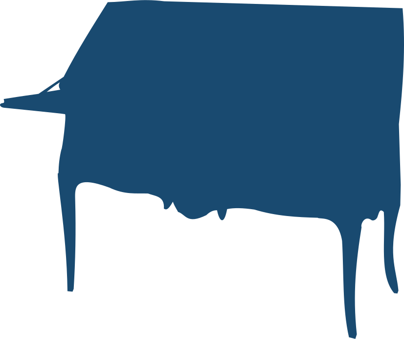 This features a blue silhouette of an old-fashioned, fold-away desk. It is depicted in black and white, giving it a classic and timeless appearance. The desk appears to be made of wood and has a distinctive shape with a slanted top. This unique design element adds character to the piece, making it stand out as an interesting focal point in any room.
