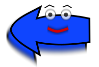 This features a blue arrow pointing to the left, with two eyes and a mouth drawn on it. The eyes are positioned above the arrow's head, while the mouth is located below its chin. This playful design gives the impression of an animated character or mascot, possibly representing a brand or product. The overall color scheme of the image is predominantly blue, with some white accents on the arrow and eyes.