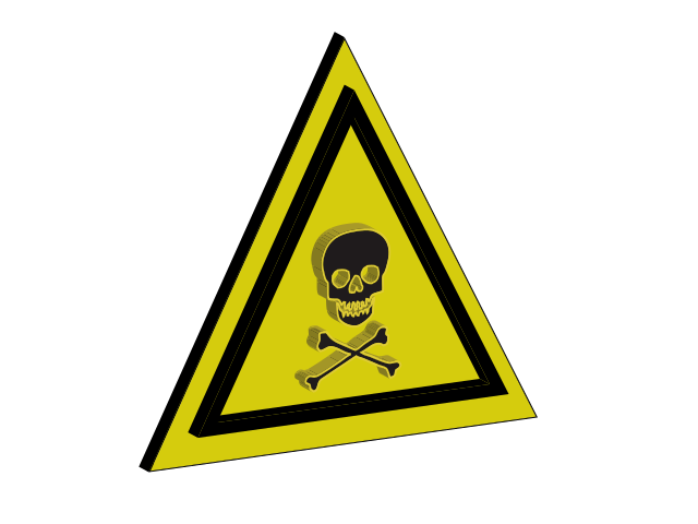This features a yellow triangle with an exclamation mark and the words "Danger! Poison!" written in black. Inside the triangle, there is a skull and crossbones symbol, which is commonly associated with danger or poisonous substances. This warning sign serves as a cautionary measure to inform people of potential hazards related to chemical warfare or other dangerous materials. The vibrant yellow color of the triangle ensures that it stands out against various backgrounds and can be easily recognized by those who come across it.