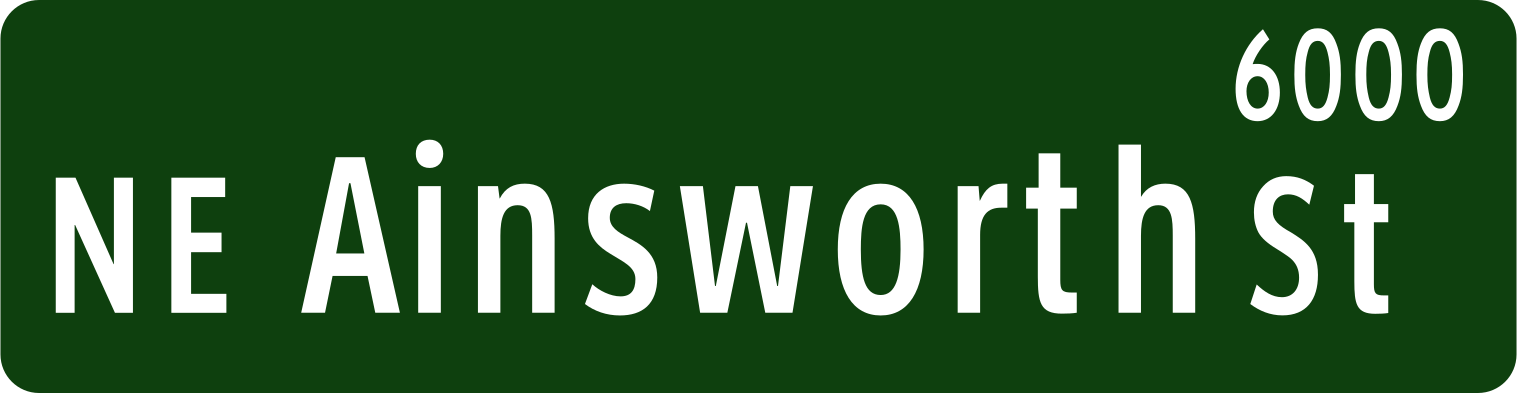 This is a completely free image Portland Oregon street name sign -- NE Ainsworth Street that you can download, post, and use for any purpose.