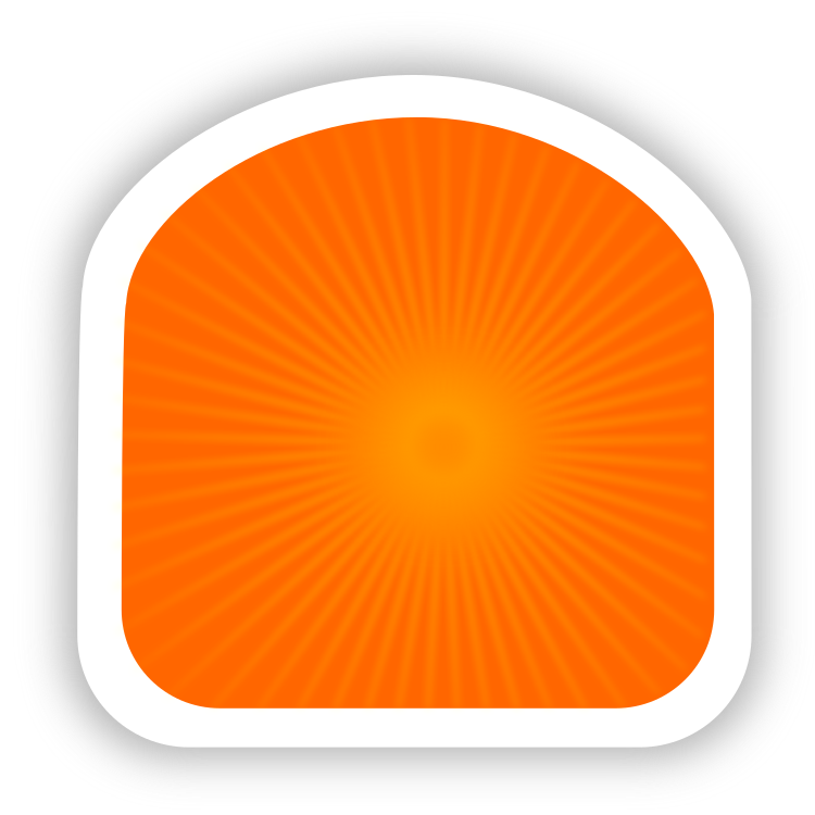 This features a square sticker with an orange background and a yellow sun in the center. The sun is surrounded by a circle, giving it a unique appearance. This sticker could be used to represent a location-based social network or simply as a decorative item for personal use. The bright colors of the sticker make it stand out and easily noticeable on various surfaces.