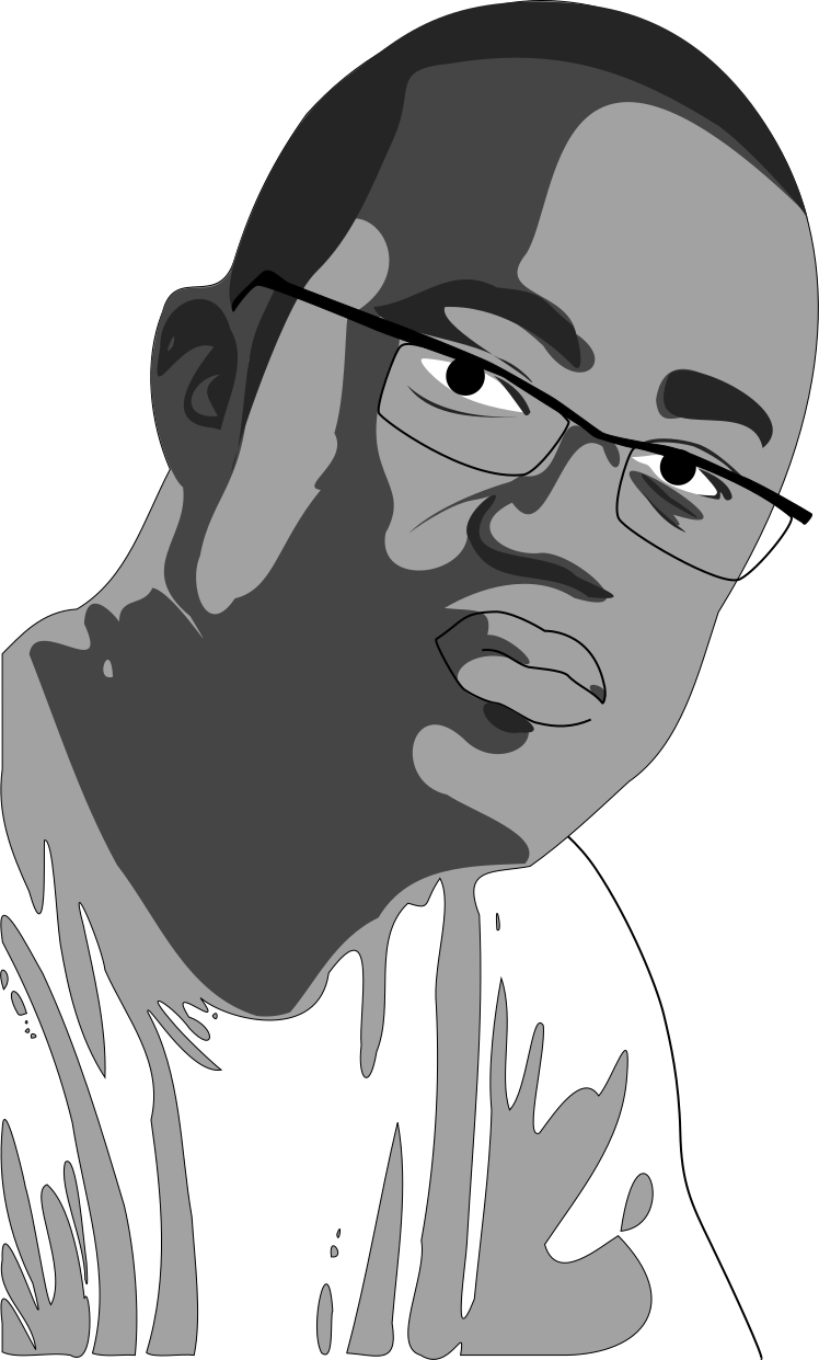 This is a black and white drawing of a man wearing glasses. He has a beard and appears to be looking at the camera. The man's head takes up most of the frame, with his eyes being the focal point. The drawing captures the essence of the man's facial features, including his nose, mouth, and ears. The overall composition of the image is simple yet effective in conveying a sense of personality through the artistic representation of the subject.