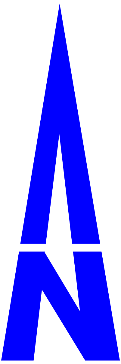 This features a blue letter N, which is the only visible object in the scene. The letter is prominently displayed and stands out against its surroundings. It appears to be pointing towards the north side, indicating a sense of direction or orientation. This simple yet striking visual could serve as an effective symbol for various purposes such as navigation, compasses, or even artistic expression.