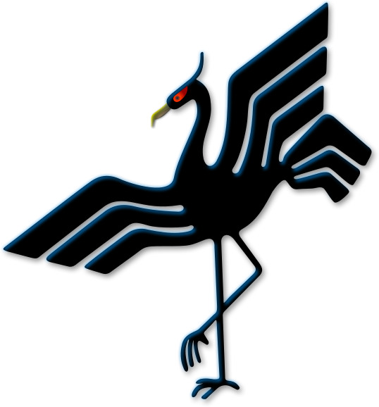 This features a black and white bird with long, thin wings. It has a distinctive beak and is perched on one leg, giving it an elegant appearance. The bird's wings are spread out, showcasing its unique design. This bird emblem could be reminiscent of hood ornaments from the 1950s or a classic simplified version created by the artist. The image was originally drawn and then converted to a vector using Inkscape software for a clean and polished look.