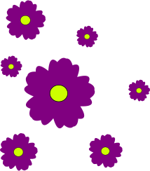 This features a purple and yellow flower design element, which is surrounded by other similar flowers. These flowers are scattered throughout the scene in various sizes and positions, creating an interesting visual effect. The combination of purple and yellow colors adds a vibrant touch to the overall composition. This design element could be used for decorative purposes or as part of a larger artwork, showcasing the beauty of nature through these colorful flowers.