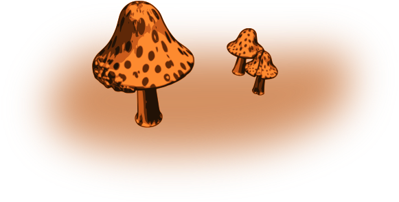 This features a brown field with three mushrooms on it. These mushrooms are orange in color and have black dots, giving them an interesting appearance. They are placed at different positions on the field, creating a visually appealing scene. The mushrooms seem to be the main focus of the image, drawing attention to their unique features.