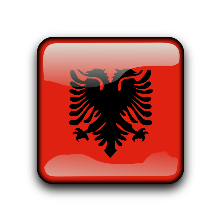 This features a red square with an emblem of a bird, which is the national flag of Albania. The bird's wings are spread out, giving it a dynamic appearance. The flag has a clear and distinctive design that makes it easily recognizable as representing the country of Albania.