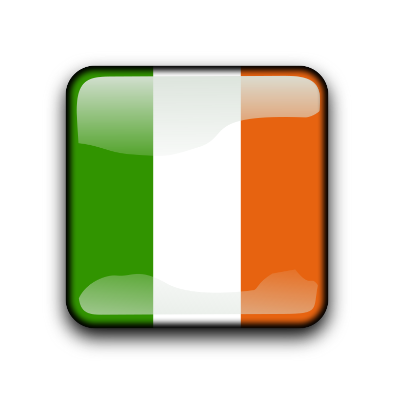 This features a square green and white flag, which is the national flag of Ireland. It has a distinctive design with a shamrock on it, symbolizing Irish heritage. The flag is displayed in a square format, making it suitable for various applications such as buttons or digital icons. Its vibrant colors and recognizable pattern make it an appealing representation of Ireland's identity.