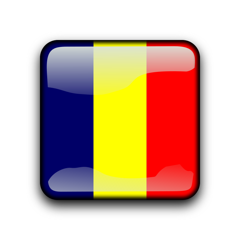 This features a square-shaped button with the colors of red, yellow, and blue. These colors are reminiscent of the flag of Belgium. The button is displayed on a white background, making it stand out prominently. The combination of these three colors creates an eye-catching design that represents the country's flag.