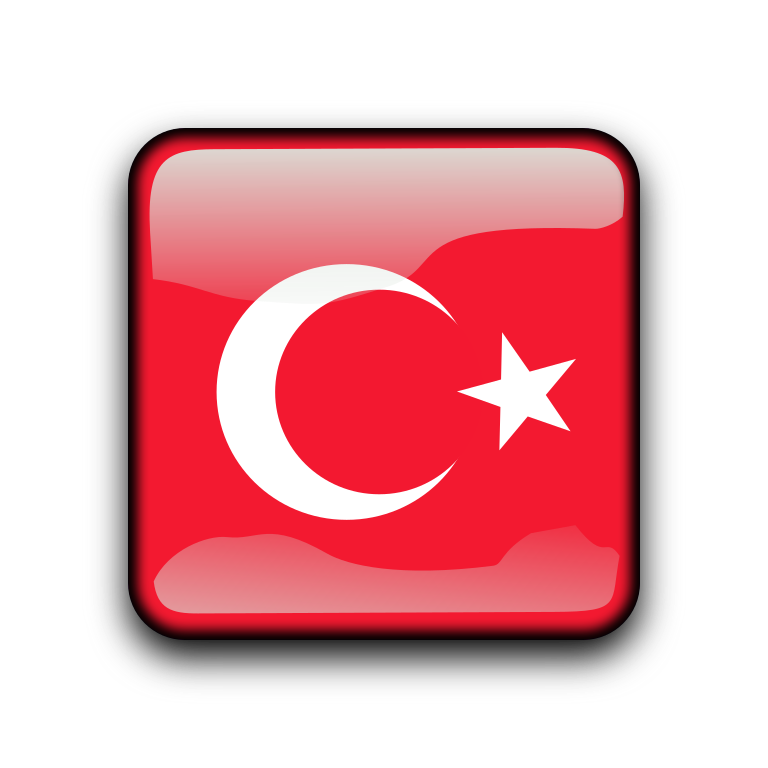 This features a square red button with the flag of Turkey. The flag is prominently displayed in the center of the button, making it easily recognizable. The button's design gives it an appealing and professional appearance, suitable for various applications such as buttons on clothing or accessories.