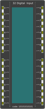 This displays a digital input card with 32 different inputs. Each input is represented by a yellow and green line, which are arranged in a row on the screen. The card appears to be used for programming or monitoring various systems, as it provides a clear visual representation of the available inputs. The layout of the card allows users to easily identify each input and understand their function within the system.