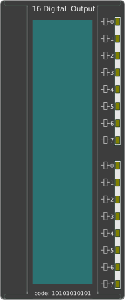 This displays a digital output card with 16 different outputs. Each output is labeled with a number, and the card appears to be used for programming purposes. The card has a blue background with yellow numbers on it, making it easy to read and understand. This type of card is commonly found in electronic devices or computer systems that require precise control over digital signals.