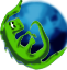 This features a green lizard with its arms outstretched, positioned in the center of a blue circle. This unique design is reminiscent of the Firefox logo and has been creatively adapted to represent Mozilla the Lizard. The lizard's pose and the vibrant colors make it an eye-catching and memorable icon for the K-Meleon internet browser.