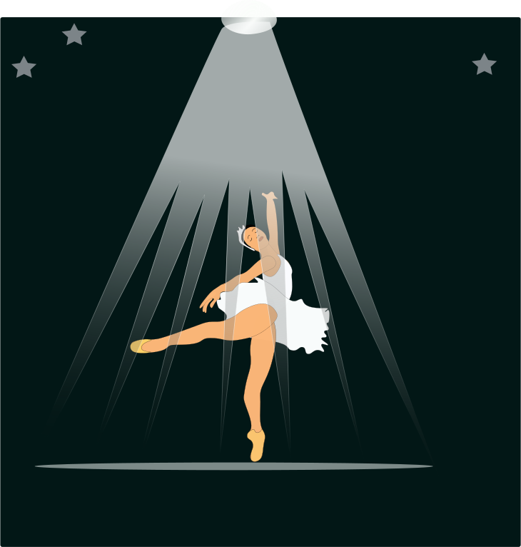 This features a woman in a white outfit, performing a ballet dance on stage. She is the main focus of the scene and appears to be the center of attention as she dances under the spotlight. The background is dark, which emphasizes her performance and adds drama to the scene. The overall atmosphere suggests that this could be an artistic representation or a promotional image for a ballet performance.