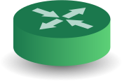 This features a green circular object with four white arrows on it. These arrows are arranged in such a way that they point towards the center of the circle, creating an arrow-like pattern. This design element gives the impression of a router or a device used for connecting to networks. The overall appearance of the object is simple and clean, making it easy to understand and identify its purpose.