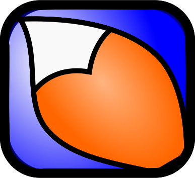 This features a square with an orange heart shape in the center. The heart is filled with blue and orange colors, giving it a vibrant appearance. The square itself has a blue background, which contrasts nicely with the brightly colored heart. This unique design could be used for various purposes such as branding or advertising.