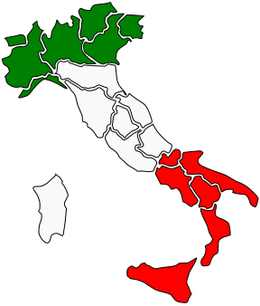 This is a map of Italy, featuring the country's regions and cities. It is divided into several different colors, with each region having its own distinct color. The map also includes a detailed outline of the country, making it easy to identify the various regions. The colors used on this map are green, red, blue, yellow, and orange, which help to differentiate between the different areas. Overall, the map provides an excellent visual representation of Italy's geography and its various regions.
