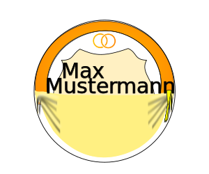 This features a round yellow and orange circle with the name Max Nustermann written in black. The circle is placed on top of an orange background, giving it a vibrant appearance. This design could be used for various purposes such as branding or identification, making it easy to recognize and remember.