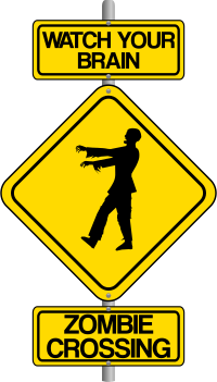 Tags: alerta, brain, cerebro, crossing, post, poste, signal, traffic, warning, watch, yellow, your, zombie, watch your brain, zombie crossing