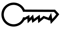 This features a black and white key icon, which is an abstract representation of a key. It appears to be a stylized version of the classic lock and key symbol. The key is positioned in the center of the image, with its shape extending outwards towards the edges. This unique design gives it a modern and minimalist appearance, making it suitable for various applications such as logos or digital designs.