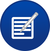 This features a blue circle with an icon of a pen and paper inside. The pen is located towards the center of the circle, while the paper is positioned slightly to the left. This icon likely represents writing or editing tasks, as it combines both the tools needed for such activities. The blue color of the circle adds a sense of calmness and professionalism to the image, making it an appealing visual representation of these concepts.