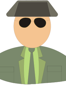 This features a cartoon-like drawing of a man wearing sunglasses and a green tie. He is dressed in military fatigues, giving the impression that he might be a soldier or a similar profession. The man's face is not fully visible, as it is covered by his tie, which adds to the playful nature of the drawing. The overall composition of the image creates an interesting and unique visual representation of a person in uniform.