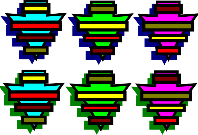 This features a collection of nine colorful, abstract shapes arranged in a row. Each shape is unique and has its own distinct design, creating an interesting visual display. These shapes are likely part of a larger artistic project or used as icons for a specific purpose. The arrangement of the shapes suggests that they may be intended to convey a particular message or theme, making them an engaging focal point in their respective contexts.