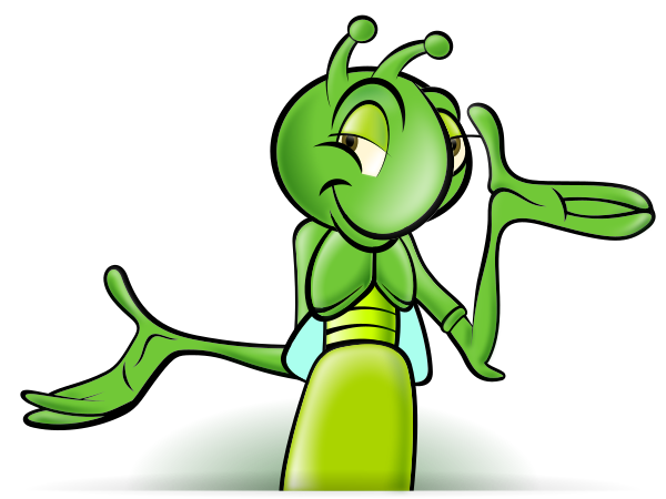 This features a green cartoon cricket with a smug look on its face. It has both of its hands facing up, giving the impression that it is waving or gesturing. The cricket appears to be posing for a picture and seems to be enjoying itself in this playful moment. Its unique appearance adds a touch of whimsy to the scene, making it an interesting and engaging image.