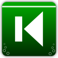 This features a green square with the letter "K" in white. This icon is likely used for playback controls, such as play or pause, on an electronic device like a music player. The color scheme of the icon is predominantly green and white, making it visually appealing and easy to identify.