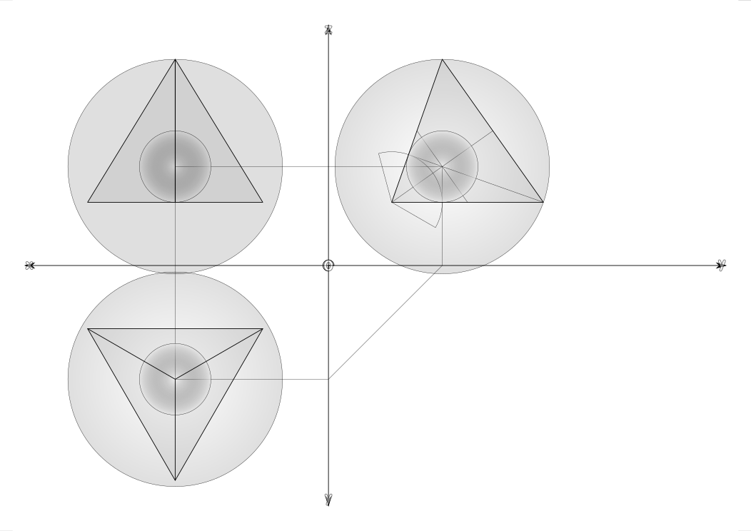 This features a white background with four geometric shapes, which are likely tetrahedra. These shapes have been drawn in different positions and orientations, creating an interesting visual effect. Each of the four tetrahedra is accompanied by a number, possibly indicating their position or order within the arrangement. The overall composition gives off a sense of symmetry and balance, with each shape being equally spaced apart from one another.