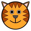 This features a cartoon tiger with big eyes and a smile on its face. It is an orange and brown color, giving it a friendly appearance. The tiger's eyes are wide open, making it look like it is smiling at the viewer. Its mouth is slightly open, adding to the playful expression of the character. This cartoon tiger could be used in various contexts such as children's books or educational materials, where its cheerful demeanor can help engage young readers and learners.