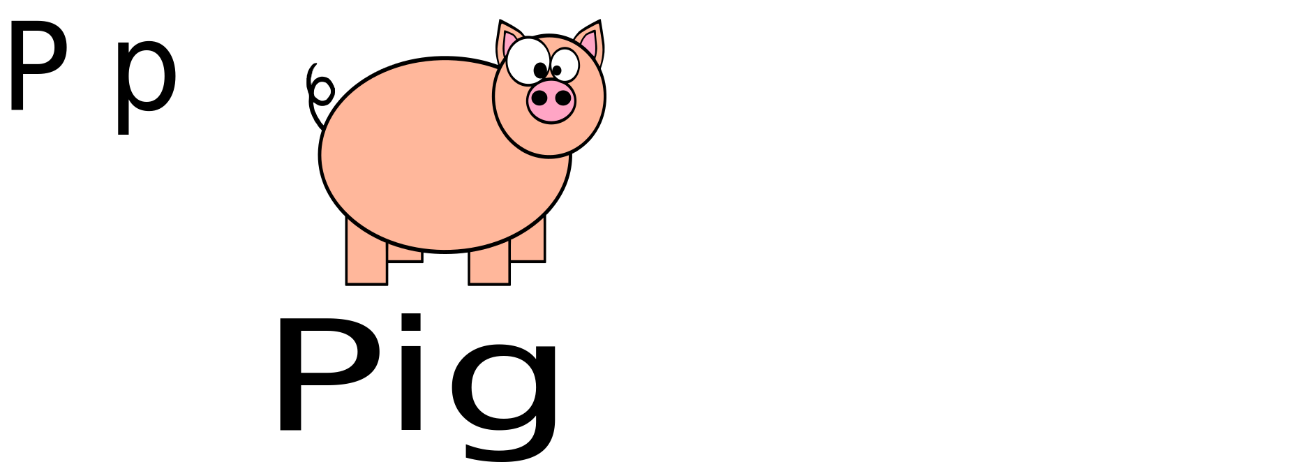 This features a pig with the letter "P" on its back. The pig is prominently displayed in the center of the scene, and it appears to be the main focus of the image. The background consists of a plain white surface that provides a clean and uncluttered look for the picture. This simple composition allows the viewer's attention to be drawn solely to the pig with the letter "P" on its back, making it an effective visual representation of the alphabet letter.
