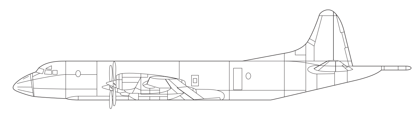 This is a drawing of an airplane, showcasing its design from the side. It features two engines on each wing and has an oval tail. The plane's body appears to be white in color. There are several small windows visible throughout the aircraft, providing visibility for the pilots during flight. This detailed drawing captures the essence of airplane design and engineering, highlighting its various components and features.
